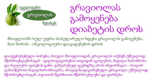 უცხოურ ინტერნეტ-წყაროებში მითითებულია, რომ გრავიოლას აქვს დიაბეტის საწინააღმდეგო თვისებები.