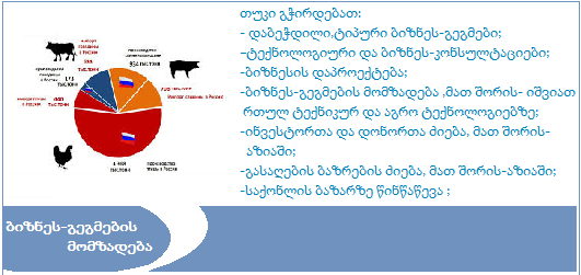ბიზნეს გეგმის შედგენის დასავლური მეთოდების უცვლელად გადმოღება ჩვენს პრაქტიკაში, არაპერსპექტიულია განსხვავებული საქმიანი გარემოს არსებობის გამო. ამიტომ საჭიროა ბიზნეს გეგმის ტიპურ სტრუქტურაში სულ მცირე სამი მნიშვნელოვანი ნაწილის დამატება, რომელშიც უნდა ჩანდეს: