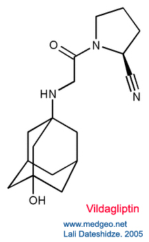 ვილდაგლიპტინი. Vildagliptin. ბრუტო–ფორმულა: C17H25N3O2. ვილდაგლიპტინს მიაკუთვნებენ ჰიპოგლიკემიური სინთეთიკური და სხვა საშუალებების ჯგუფს. CAS-კოდი: 274901-16-5.