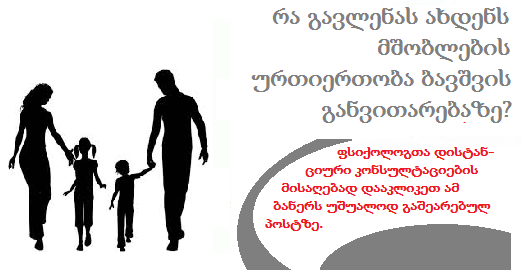 აქვე მოდით განვიხილოთ რა გავლენას ახდენს წყვილთაშორისი კონფლიქტი დედა–შვილისა და მამა–შვილის ურთიერთობებზე.