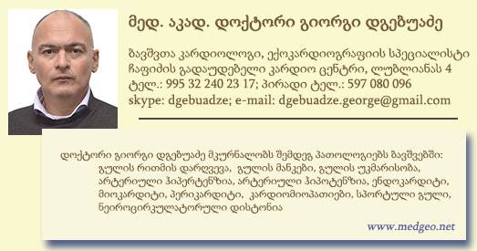 გიორგი დგებუაძე – ჩაფიძის გულის ცენტრის ამბულატორიული დეპარტამენტის ბავშვთა კარდიოლოგი, ექოკარდიოგრაფიის სპეციალისტი, მედიცინის აკადემიური დოქტორი.